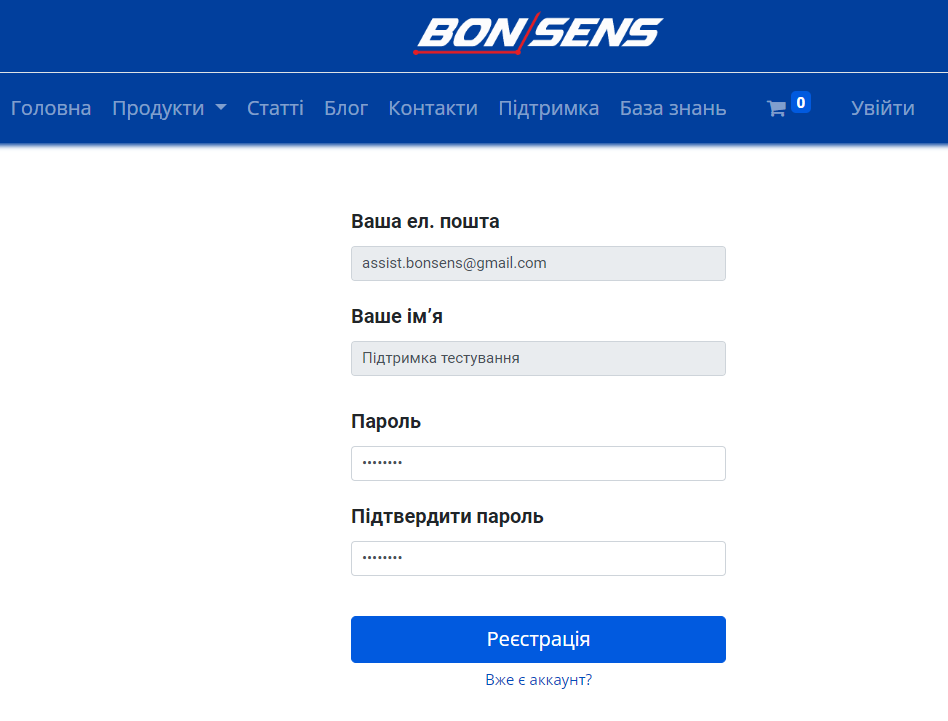 Вас автоматично перенесе на наш сайт, де потрібно буде створити свій пароль. Введіть бажаний пароль і натисніть кнопку «Реєстрація».